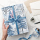 Blue White Mountain Christmas Trees Wrapping Paper