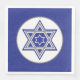 Hanukkah themed paper napkin. Classic Hanukkah blue background with an image of a multi-layered Star of David in a white circle. Size is optional, so although this shows a large dinner napkin, you can swap it out for the smaller size if you choose.