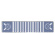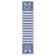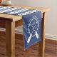 Nautical table runner in blue and white for your lake house. Add your family name, initial, and the year established to a nautical monogram of crossed paddles over a rope circle. The monogrammed table runner also features blue and white stripes.