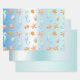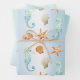 Blue White Ombre Shells Seahorse Starfish Wrapping Paper Sheet