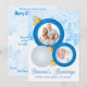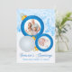 This festive, customisable double photo Christmas card has a blue and white snowflakes background with two blue patterned ball ornament frames, one silver glitter ornament, and removeable blue "season's greetings" text on it. Upload your own digital photos. If you need any matching items, or if you need assistance, please email niteowlstudio@gmail.com.