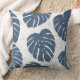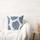 Blue & White Palm Leaves Throw Pillow