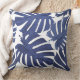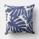 Blue & White Palm Tropical Leaves Pattern Cushion