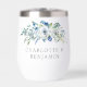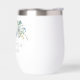 Cheerful white peony flowers and green watercolor leaves form a beautiful border on a pretty personalised blue floral spring wedding wine tumbler for your chic garden reception. Customise with your names under the beautiful bouquet for a sweet keepsake.