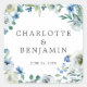 Blue White Peony Floral Custom Spring Wedding Square Sticker