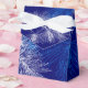 An elegant party favour box with a blue and white pine art design with vintage art of pine branches and pinecones on a deep blue background. Customise it to add your name or message, change sizing, even save your design for later.