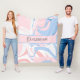 Blue white and pink marble swirl pattern on this fleece blanket. Personalise it with your name or initials.