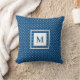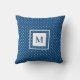 Blue White Polka Dot Pattern with Modern Monogram Cushion