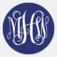 Blue White Preppy Vine Script Monogram DIY BG Classic Round Sticker