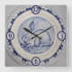 Blue & White Rabbit Bunny Pottery China Dedham Art Square Wall Clock