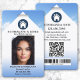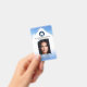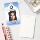 Professional photo ID badge featuring your custom photo and logo on an elegant blue white design with some fluffy clouds. On the back you can add a custom bar code or QR code and additional texts (or delete the templates).
