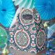 This is a blue, white, red and turquoise vintage watercolor oriental moroccan azulejo pattern.
