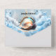 An elegant, classy and chic invite featuring a beautiful clam shell with diamonds running down its middle that appears to shimmer and shine with an iridescent glow. The shell is surrounded by crashing ocean water and rests against a pale blue background. Both the bottom tear off strip and the back flap have mother of pearl shiny shells too and the tear off strip has a dark bold blue shine edged with glitter. All the shells have a mother of pearl sheen to them. This budget friendly invitation is ideal for coastal destination; tropical island and beach theme weddings.