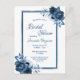 Blue white silver floral bridal shower invitation postcard