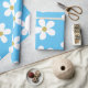 A pretty simple daisy design in white on a blue background with an elegant gold centre.
