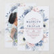 Blue White Simple Floral Minimalist photo Wedding Invitation