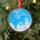 Blue White Snow House Merry Christmas Metal Tree Decoration