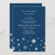 Winter Wedding invitations in modern and elegant dark navy blue and white festive snowflakes pattern, Customisable with your wedding details. Available in matching winter holiday wedding products.