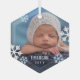 Beautiful glass Christmas ornament to celebrate your baby's first Christmas. Add a photo of your baby and their name and the year. White and blue snowflakes are printed on your photo to give it a beautifully wintery feel.