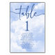 This is a Blue White Sparkle Clouds Wedding Table Number w/ Names!