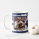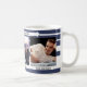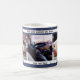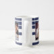 A dark blue and white striped mug with your own photos. The text background images can be deleted if you do not need them. Great for his birthday or Father's Day for instance.