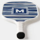 Fresh and bright shades of blue and white on this striped design with a monogram box for a single initial.