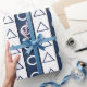Blue White Stripes Circle Triangle Geometric Wrapping Paper