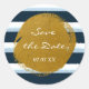 Blue White Stripes & Gold Foil Watercolor Sticker