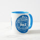 Blue/white styled mug peace in multiple languages