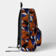 This cool basketball backpack features a random pattern of varied size basketballs turned every which way on a black background - each of the basketballs in the pattern has two recolored panels--one blue and one white - customise with the athlete's monogram - by katz_d_zynes