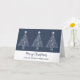 Merry Christmas for stepson card in modern navy blue with ornate christmas tree illustrations.