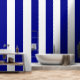 Blue White Vertical Big Stripes Pattern Wallpaper