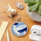 This cute volleyball keychain features the realistic image of a volleyball that has light & dark blue & white panels and a sprinkling of tiny faux silver glitter stars, upon which you can customise the player's name - by katz_d_zynes