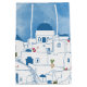Blue & White Watercolor Santorini Greece Medium Gift Bag