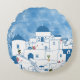 Blue & White Watercolor Santorini Greece Round Cushion