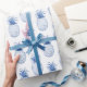 Blue White Watercolor Tropical Pineapple Wrapping Paper