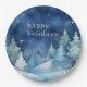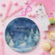 Blue & White Watercolor Winter Scenery Holiday Paper Plate