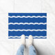 Blue white waves stripes nautical pattern doormat