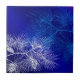 Winter holiday art with an elegant pattern of pine boughs and pinecones in blue and white on an icy background of blues and violet.
