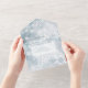ALSO AVAILABLE WITH A QR CODE TO SCAN OR WITH DINNER SELECTION OPTIONS.. This design features a soft bokeh blue sky highlighting a snowfall on a bed on white. This design is part of the Blue Winter Snow Modern Wedding Suite Collection. Personalised All-In-One invitations are a unique combination of both a beautifully printed custom invitation with an easy to tear off perforated RSVP postcard. And they are so easy to use! You simply fold, then seal the back flap with the three included clear stickers, and mail. And when your guests receive your custom invite, they just tear the perforated RSVP Card off and drop it back in the mail to you!