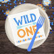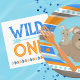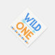 Blue Wild One First Birthday Paper Napkins in Blue, Orange, Brown, Forest Animals. Part of our Wild One 1st Birthday Collection. Also works great for "One Happy Camper" themes!