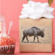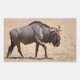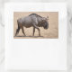 Blue wildebeest (Connochaetes taurinus) walking on sandy ground seen from profile