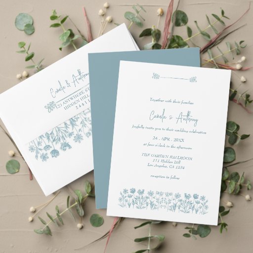 Blue Wildflower Boho Wedding Invitation