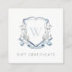 Blue Wildflower Crest Monogram Gift Certificate