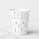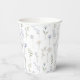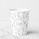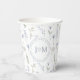 Elegant romantic botanical rustic greenery blue floral garden wedding paper cups with bride groom monogram.
