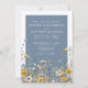Dusty Blue Wildflower Wedding Invitation with Yellow Flowers. Set the tone for your wedding with this elegant design featuring a dark periwinkle blue background on the front, accented by a crisp white border and white typography for a clean, refined contrast. The back of the invitation continues the look with a solid coordinating blue background for a polished, cohesive finish.