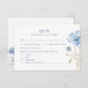 This RSVP card combines delicate blue watercolor wildflowers with a timeless layout, perfect for modern or rustic garden weddings. The back includes a matching floral or address design, making mail-back responses simple and stylish. Its soft botanical details offer an elegant, calming atmosphere that pairs beautifully with the full Blue Wildflower Garden Collection. Ideal for couples seeking cohesive, nature-inspired stationery. High-quality printing ensures every detail remains crisp and refined. Personalize effortlessly to suit your event.