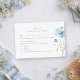 This watercolor RSVP card showcases blue wildflowers arranged in a soft, airy botanical style. The design blends rustic charm with modern simplicity, making it perfect for outdoor and garden weddings. Guests can respond easily, and the coordinating reverse-side design adds an elegant finishing touch. All text is fully editable so you can personalize it for your celebration. A lovely addition to your blue floral wedding suite.