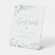 Blue Wildflower script rustic Wedding Guest Book Pedestal Sign