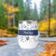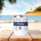 Relax after your workout with a nice wine in this personalized wine tumbler with a beautiful blue boho wildflower pattern with monogram name.